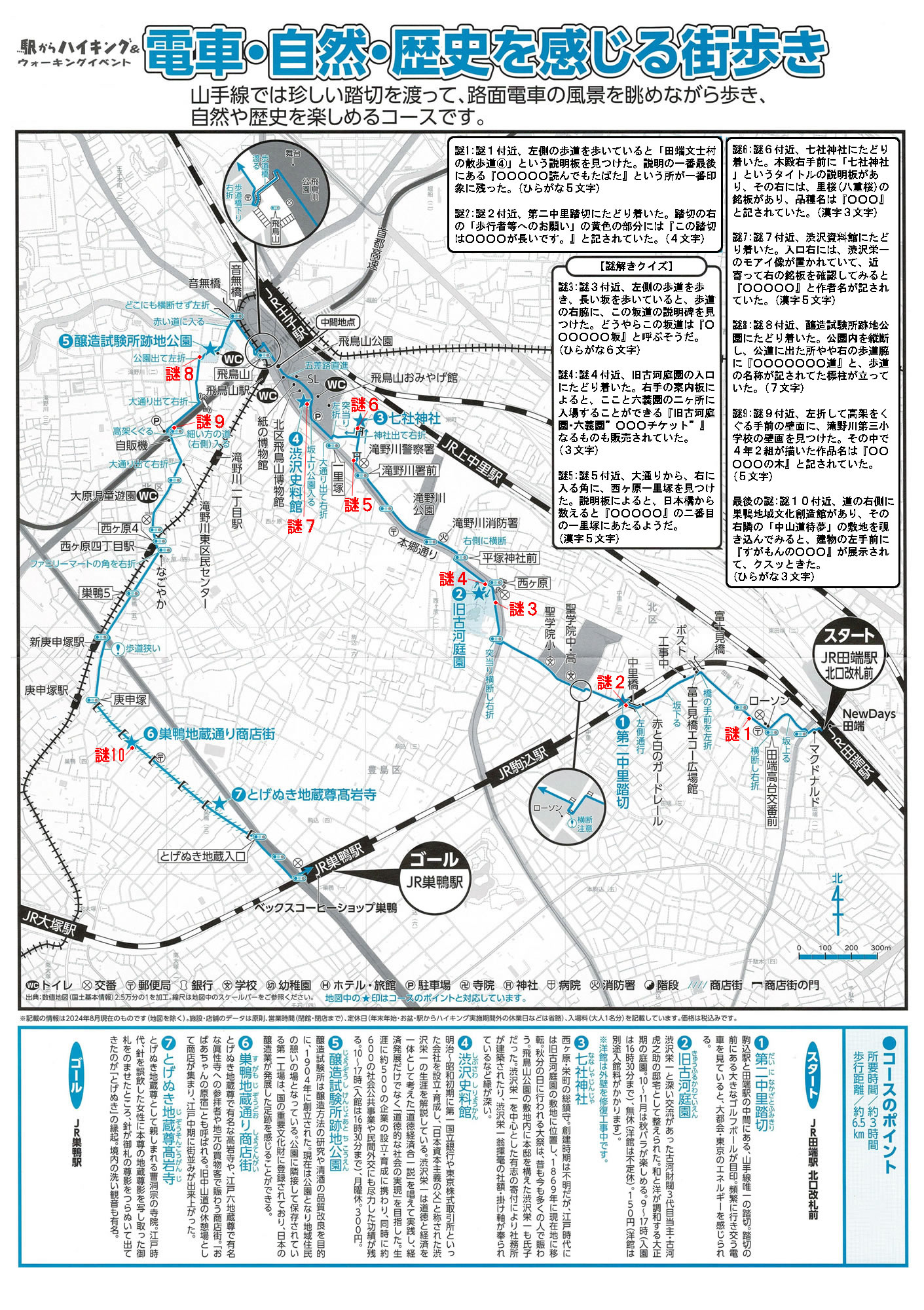 ・コース :駅→第二中里踏切→旧古河庭園→七社神社→渋沢史料館→醸造試験所跡地公園→巣鴨地蔵通り商店街→とげぬき地蔵尊髙岩寺→JR巣鴨駅